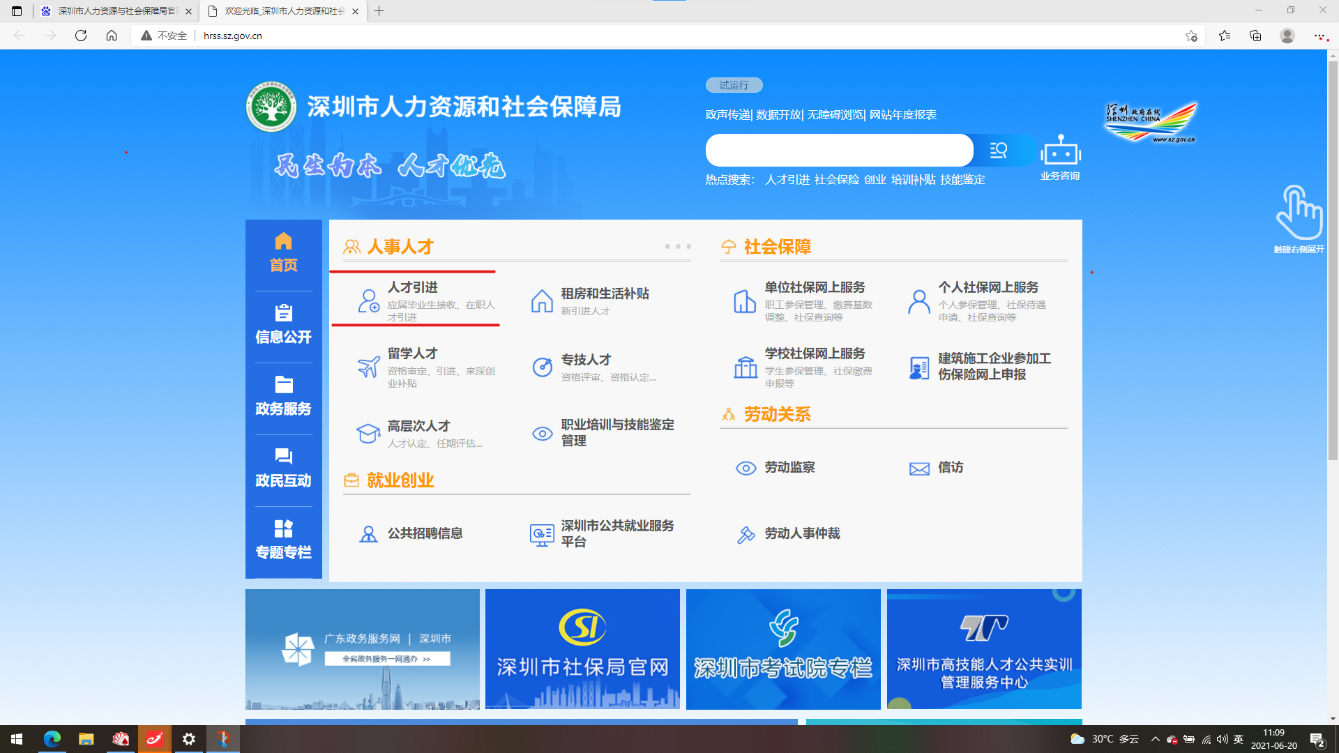 第一步 搜索深圳市人力资源与社会保障局官网,网站地址:http://hrss.sz.gov.cn/ 显示官网的那个就是正确的网址